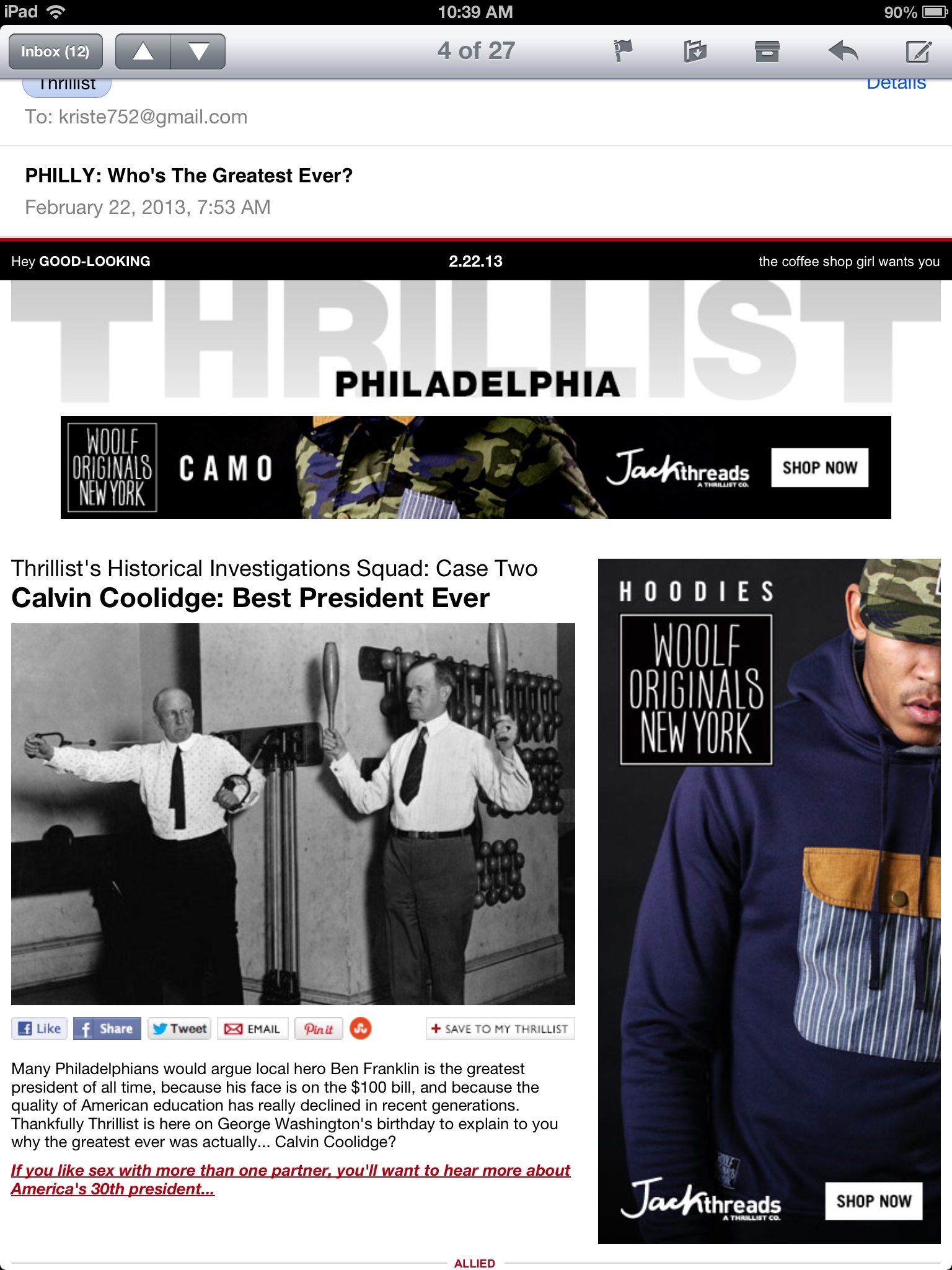 “Many Philadelphians would argue local hero Ben Franklin is the greatest president of all time, because his face is on the $100 bill, and because the quality of American education has really declined in recent generations. Thankfully Thrillist is here on George Washington’s birthday to explain to you why the greatest ever was actually… Calvin Coolidge?”
